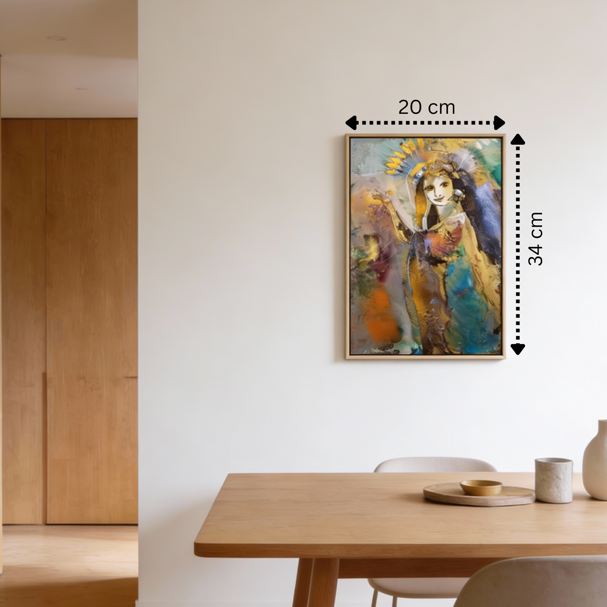 Die Mono-Sgraffito-Technik verstärkt diesen Eindruck von Tiefe und Zeitlichkeit. Pigmentschichten wurden aufgebaut, wieder freigelegt, eingeritzt und durchlässig gemacht. Linien und Flächen greifen ineinander, lösen sich auf und formieren sich neu, sodass die Figur nicht statisch wirkt, sondern wie Teil eines fortwährenden inneren Prozesses. Das Damenbildnis wird so weniger zu einem Porträt im klassischen Sinne als zu einer poetischen Erscheinung – einem Sinnbild für Weiblichkeit, Würde und stille Stärke. Das kleine Format intensiviert die Wirkung: Erst in der Nähe offenbaren sich die feinen Strukturen, die Spuren des Arbeitsprozesses und die emotionale Tiefe des Werkes.