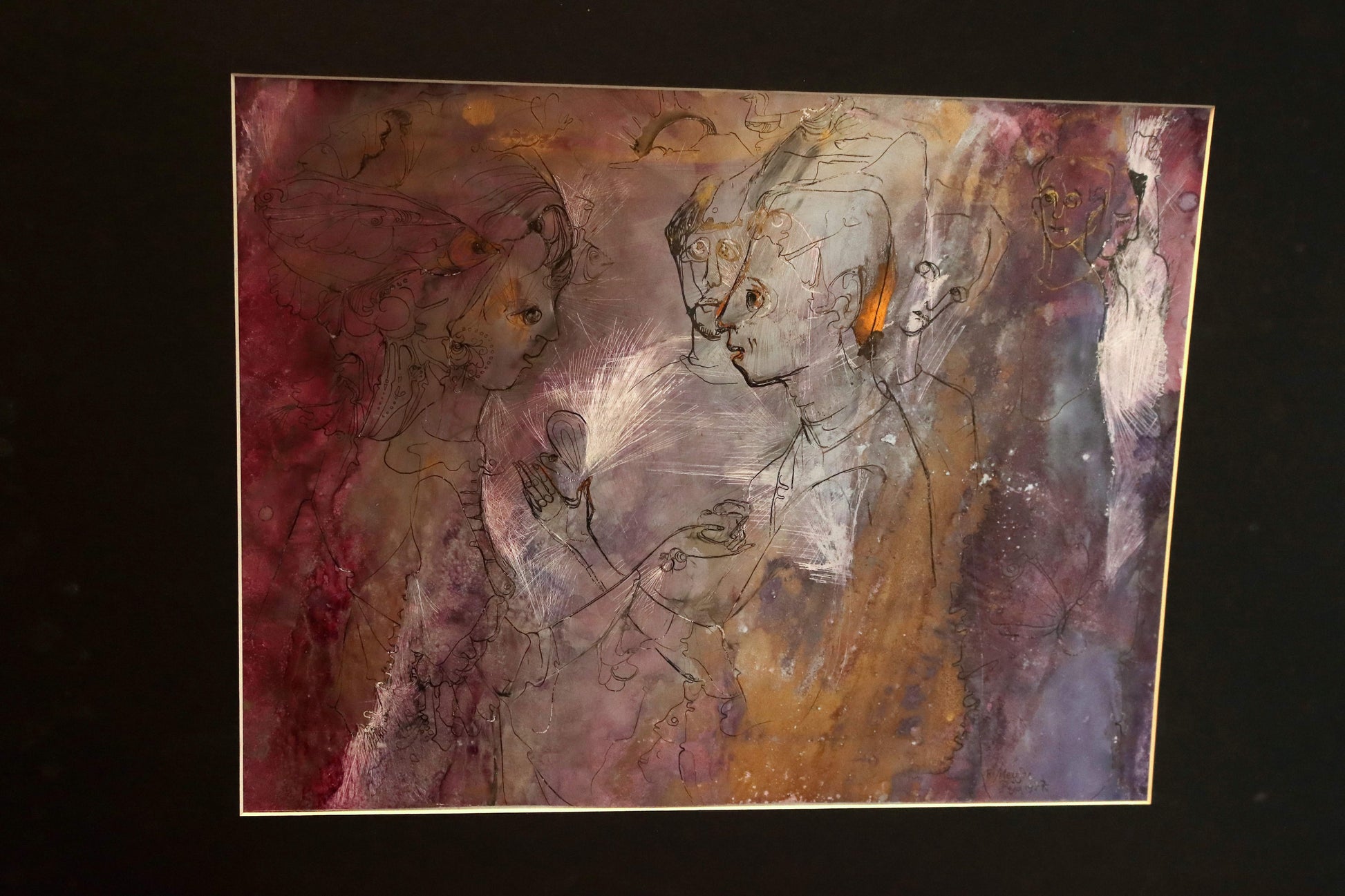 „Die Liebenden“ aus dem Jahr 1977 ist ein leises, aber zutiefst berührendes Werk von Prof. Ri Meuser von Eschmar – eine Darstellung von Nähe, Verbundenheit und dem fragilen Gleichgewicht zwischen Seele und Körper. Entstanden in ihrer selbstentwickelten Mono Sgraffito-Technik, entfaltet das Gemälde eine zarte, fast durchscheinende Welt aus Linien, Licht und Emotion.