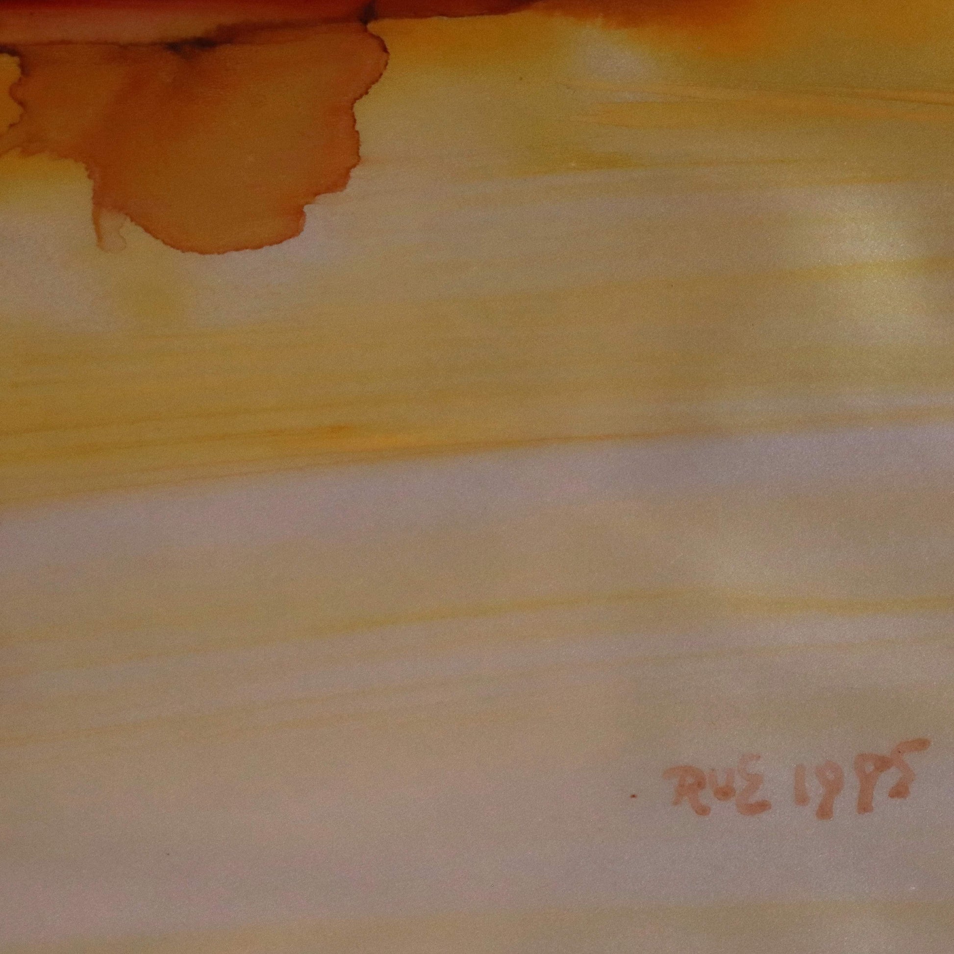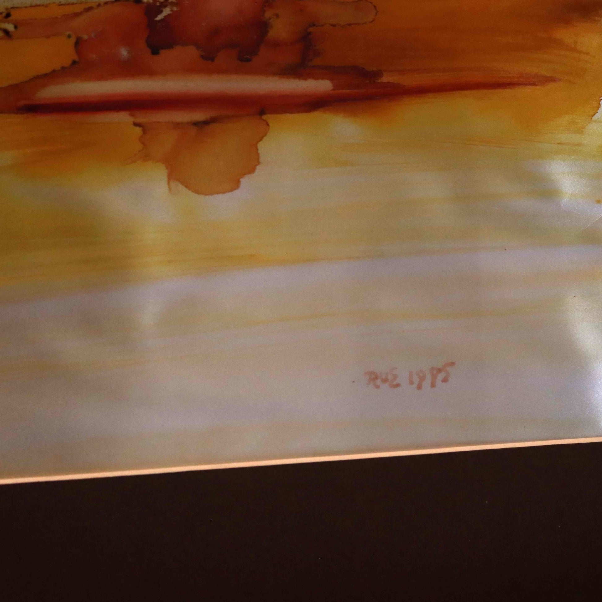 Diese Arbeit steht exemplarisch für Ri Meusers kreative Phase der 1980er Jahre, in der sie verstärkt mit metallischen Trägern experimentierte. Die Kombination aus technischer Präzision und intuitivem Farbgefühl zeigt ihre Meisterschaft im Umgang mit Material und Licht. Jedes Werk auf Silber Puran ist ein Unikat – lebendig, wandelbar und je nach Lichteinfall immer wieder neu zu entdecken.