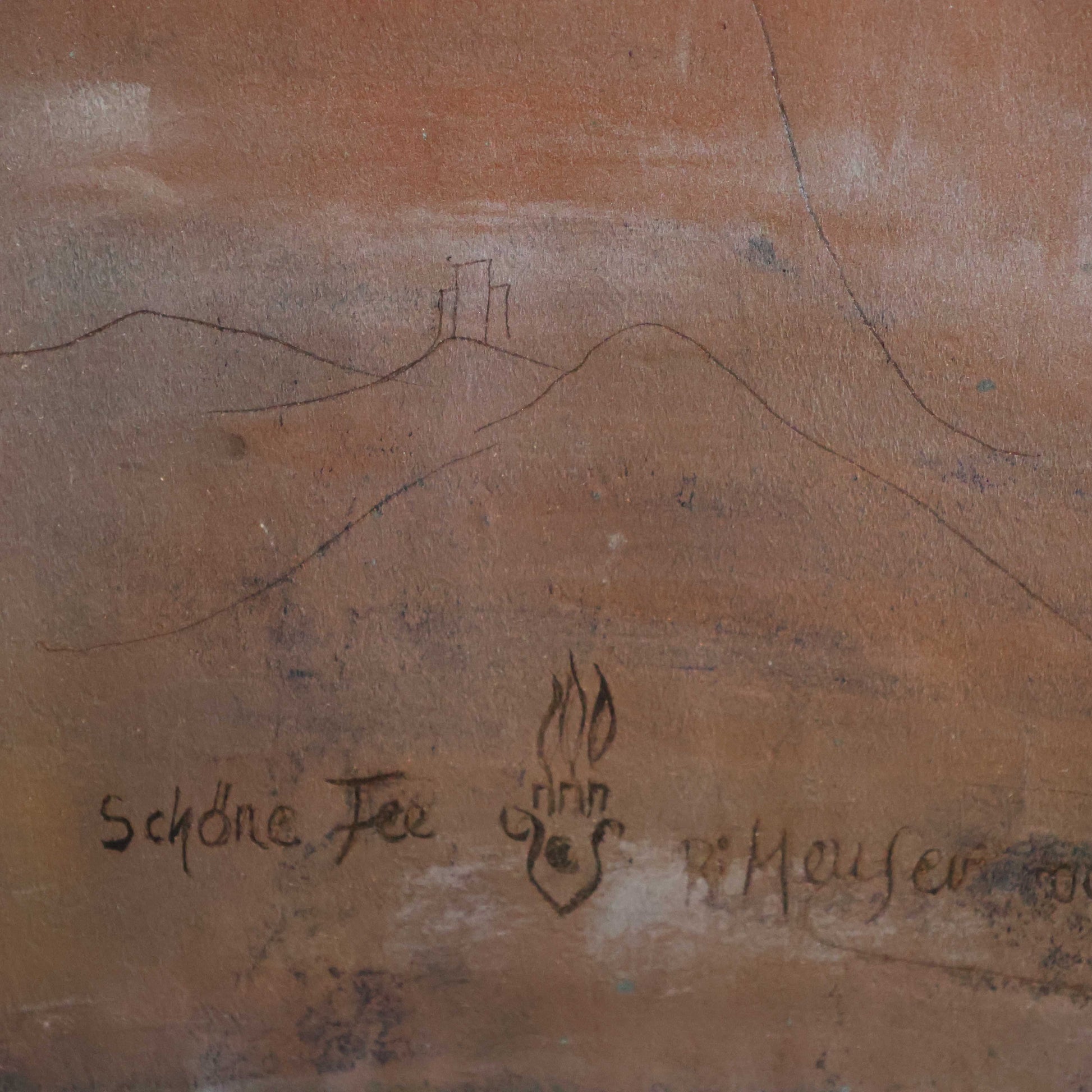 „Schöne Fee“ aus dem Jahr 1988 ist ein Werk voller Anmut, Leichtigkeit und mystischer Strahlkraft – ein Sinnbild jener feinen Balance zwischen Realität und Märchenwelt, die das Schaffen von Prof. Ri Meuser von Eschmar so unverwechselbar macht. Entstanden auf einer Silverpuran-Folie, einem Material, das sie selbst zu ihrer einzigartigen Maltechnik entwickelte, verbindet dieses Werk Licht, Bewegung und Poesie zu einem schimmernden Gesamterlebnis.