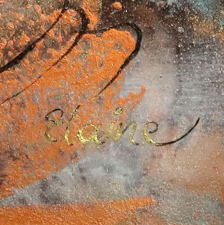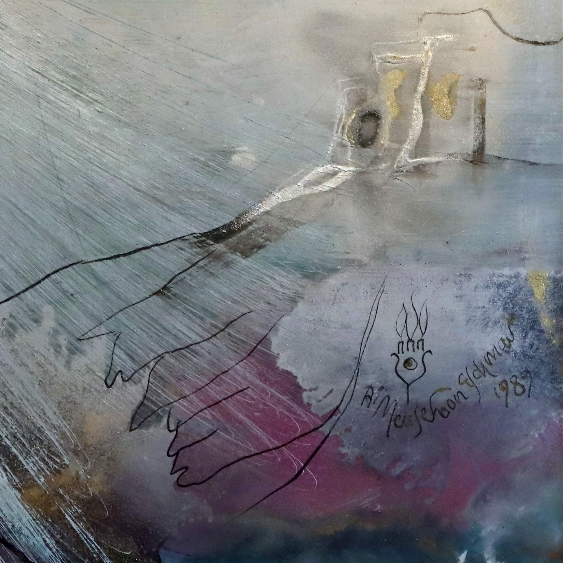 In der Mono-Sgraffito-Technik verbindet Ri Meuser von Eschmar feine Linien mit vielschichtigen Farbräumen. Pigmente in Grau, Blau, Ocker und Kupfer überlagern sich, werden freigelegt, wieder zurückgenommen. So entsteht eine Oberfläche, die nicht glatt ist, sondern lebt – voller Spuren, Tiefe und Zeit.